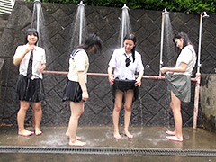 しばしの休憩 冬服の部終了、みんなでシャワーを浴びてほっと一息つきましょう。4人仲良く並んでシャワーを浴びています。シャワーを浴びた後は、制服に含まれた大量の水分を絞っています。じっくりとご堪能あれ。 ※本編中、映像が乱...